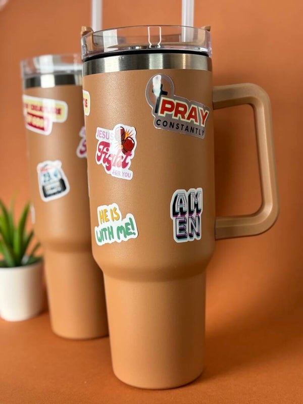 Gobelet isotherme en acier inoxydable à double paroi avec couvercle et poignée, paille intégrée, boisson portable de grande capacité pour la voiture/la maison/le bureau, accessoire de voyage d'été.