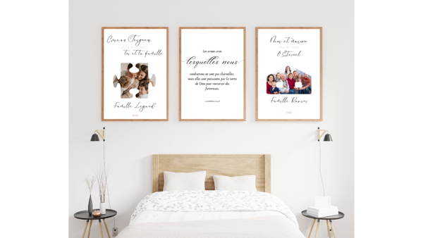 Cette affiche personnalisable allie émotion et foi: idéal pour afficher une photo de famille, couple ou naissance accompagné d'un verset biblique.